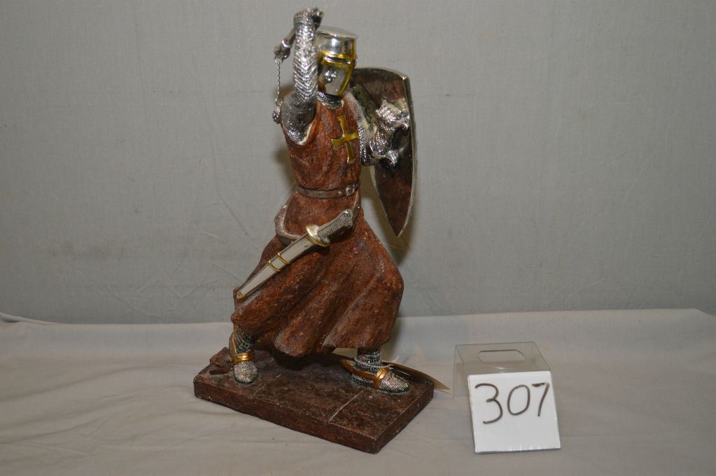 Knight from Crusade Era Figure [ compositon w/ chain mail armour, sword, shield & mace , approx. 15" ht ]