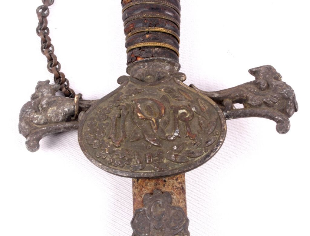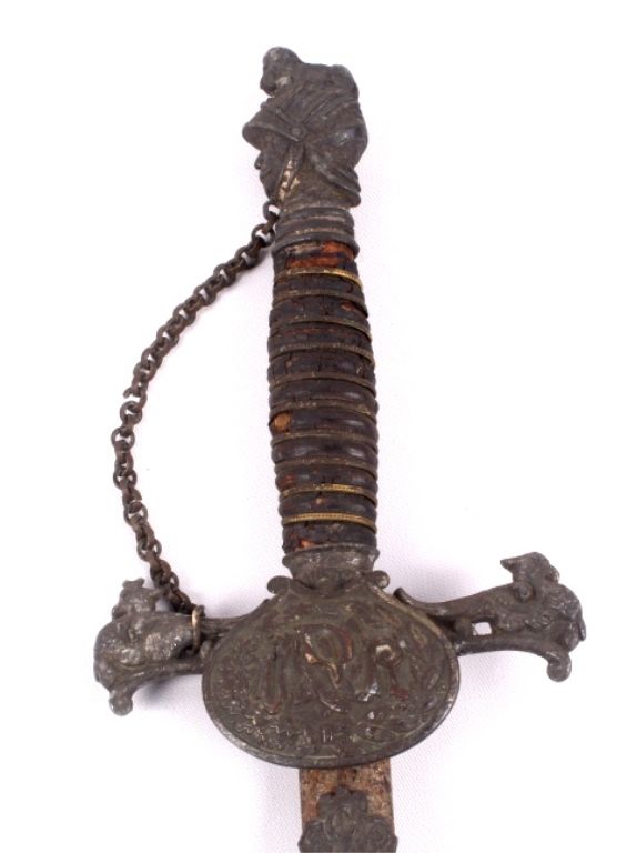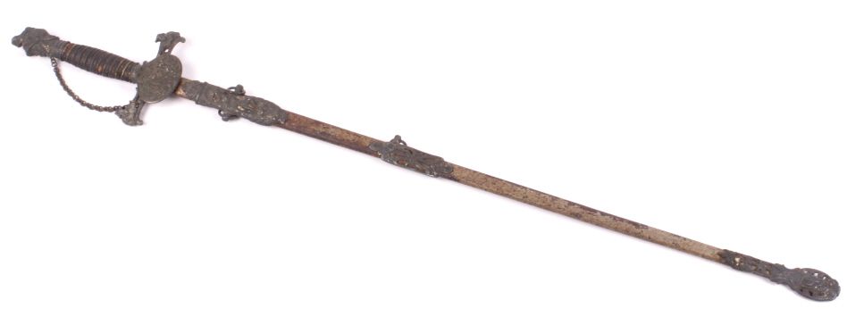 This lot features a Knights of Pythias sword. The Knights of Pythias is a fraternal organization founded in 1864. Members who achieved the Knight Degree were permitted to join the Uniformed Rank. This sword is markedFCB, which stands for Friendship, Charity, Benevolence. The sword is also marked UR for the distinguised title of Uniformed Rank. Overall length with the scabbord is 38". The blade is 30" in length.