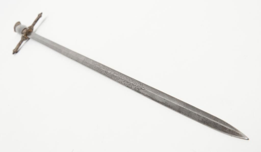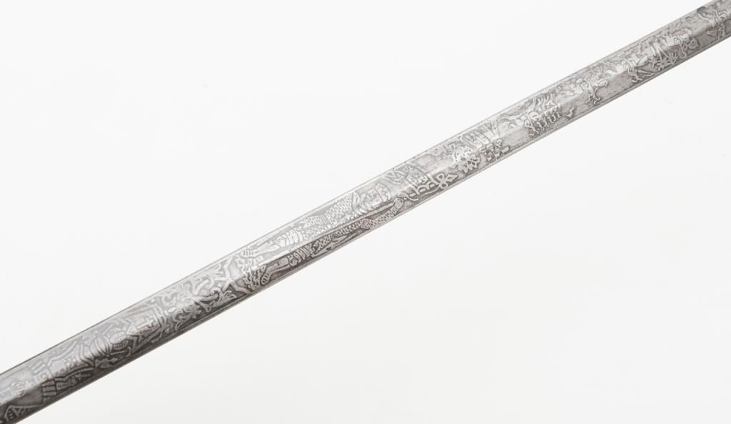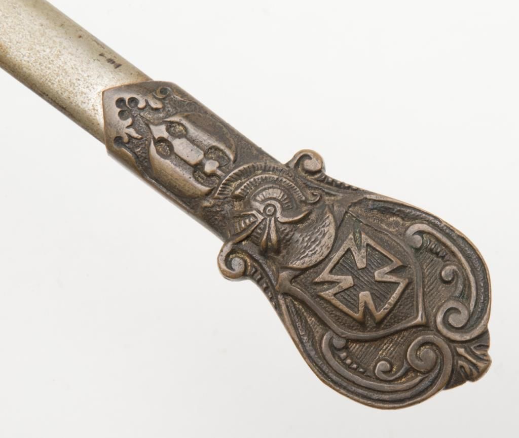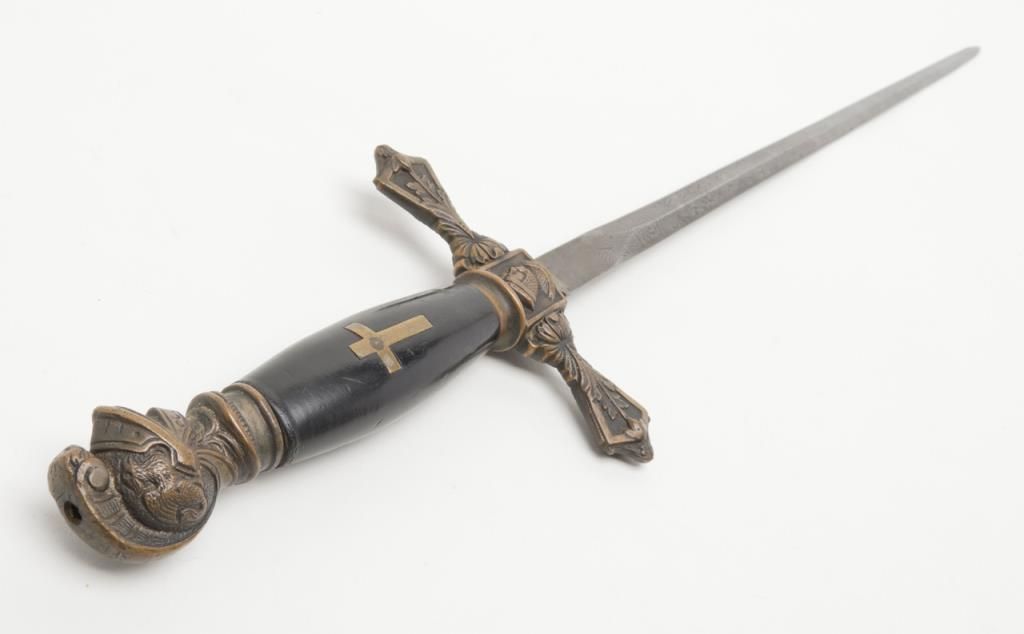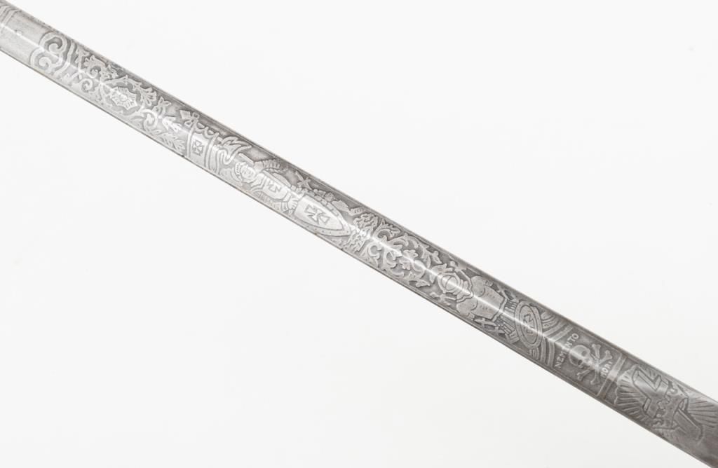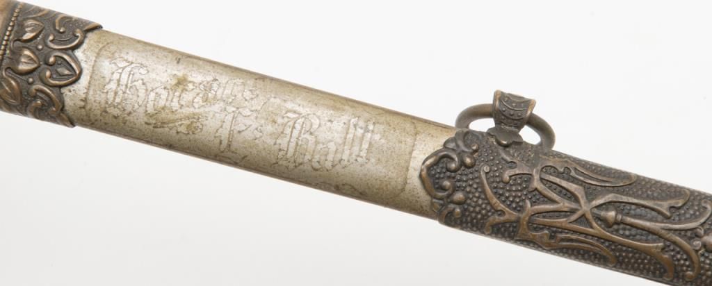 Knights of Columbus Fraternal sword with metal scabbard inscribed to Horace E. Ball; etched blade; sword by The Henderson Ames Co. Est.: $100-$200.
