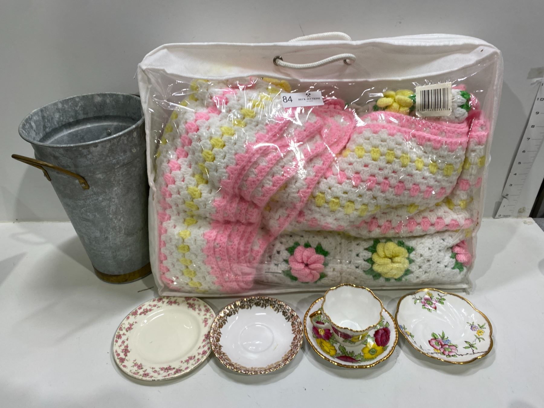 Knit Blankets Assorted China And Metal Pot