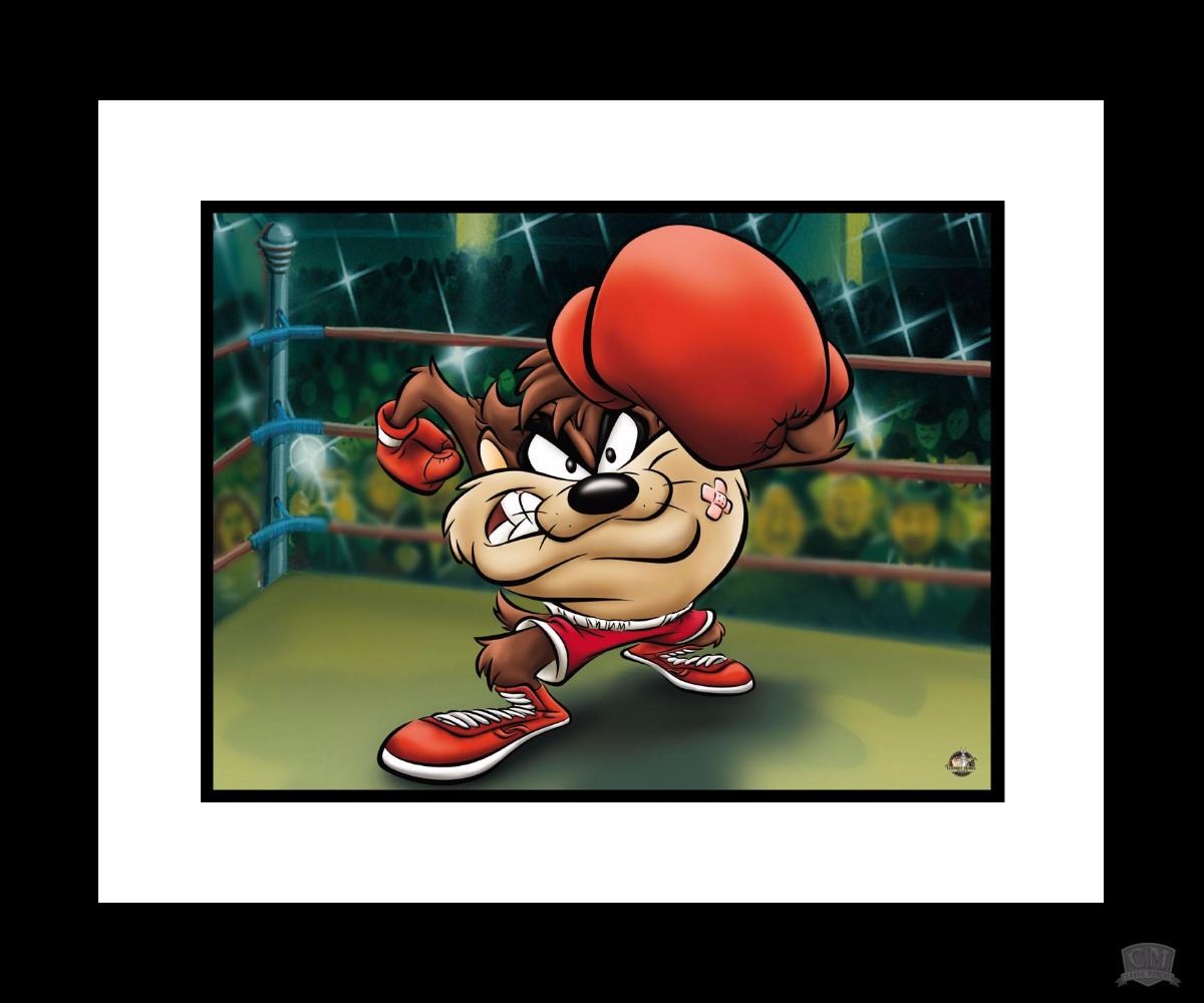KNOCKOUT TAZ- Framed limited edition (hand-numbered to 500 pieces) 16â€x20†giclee print, featuring Tasmanian Devil delivering a knockout punch in the ring.“Giclée,†as a fine art term, has come to be associated with prints using fade-resistant "archiv