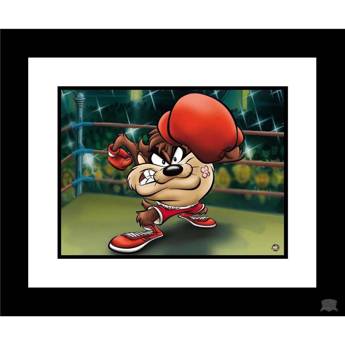KNOCKOUT TAZ- Framed limited edition (hand-numbered to 500 pieces) 16â€x20†giclee print, featuring Tasmanian Devil delivering a knockout punch in the ring.“Giclée,†as a fine art term, has come to be associated with prints using fade-resistant "archiv