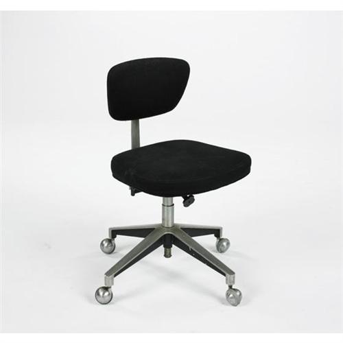 19 w x 20 d x 32 h inches<BR><BR>Condition: Soiling, staining and minor fading to upholstery. Scratches to metal base. Casters would benefit from a light oiling. Fair vintage condition overall.