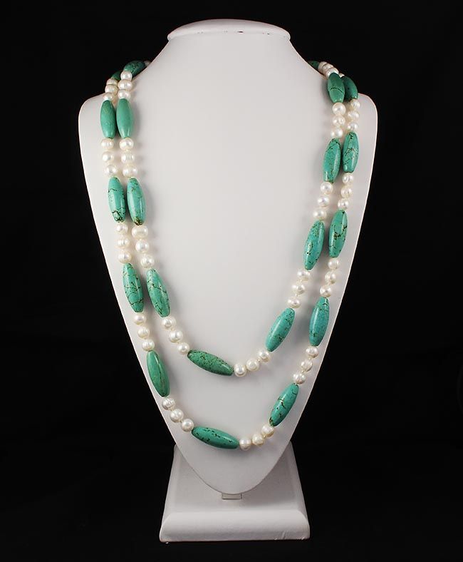 Knotted Turquoise and Pearl Long Necklace **|**|** 1240.50CARAT Jessica Knotted Necklace Freshwater Cultured Pearl 9MM w/ Turquoise Long Necklace ; MSRP: $0