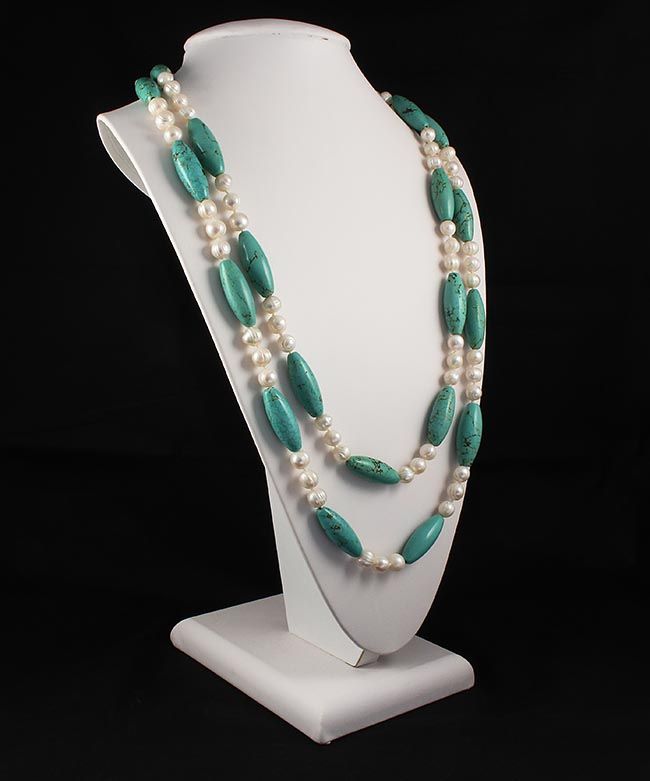 Knotted Turquoise and Pearl Long Necklace **|**|** 1240.50CARAT Jessica Knotted Necklace Freshwater Cultured Pearl 9MM w/ Turquoise Long Necklace ; MSRP: $0