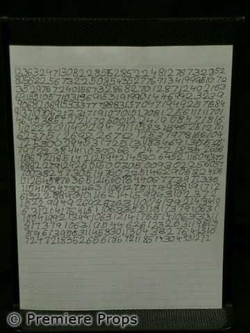Caleb's (Chandler Canterbury) screen used, white lined notebook paper w/ lines of written numbers (*copies) (approx. 10" x 7")