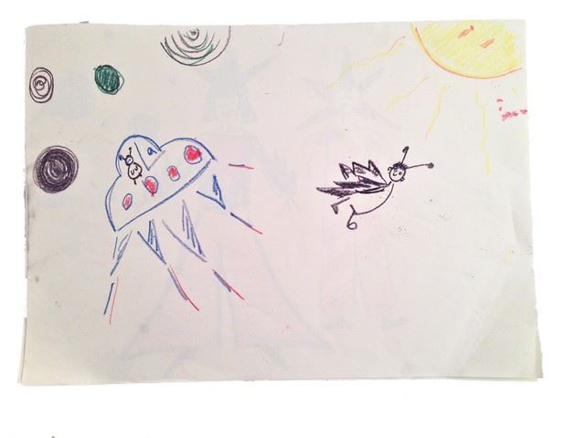 Hero, screen used, copies of children's drawings from the classroom, 6 total drawings. (approx16x12" each)