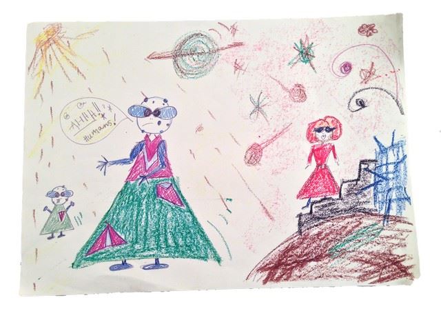 Hero, screen used, copies of children's drawings from the classroom, 2 total drawings. (approx16x12" each)