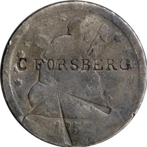 <B>1856 & 1857 Counterstamped Seated Quarters.</B></I> An 1856<B> </B></I>stamped <B>Rudolph, Rulau Calif-119, Brunk R-605; </B></I>and<B> </B></I>an 1857 stamped<B> C. Forsberg, Rulau MV-90, Brunk F-344. <BR> </B></I><BR><BR><b>Shipping:</b> Coins & Currency (<a target="_blank" href="http://www.heritageauctions.com/common/shipping.php">view shipping information</a>)