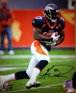 Moreno was drafted by the Denver Broncos with the 12th overall pick, which was their first of 2 first-round picks in the 2009 NFL Draft. On September 27, 2009, Moreno scored his first career NFL touchdown with a 7 yard run against the Oakland Raiders. Knowshon Moreno has hand autographed this Denver Broncos 11x14 Photo. Moreno Hologram and Certificate of Authenticity from Athlon Sports