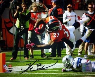 Moreno was drafted by the Denver Broncos with the 12th overall pick, which was their first of 2 first-round picks in the 2009 NFL Draft. On September 27, 2009, Moreno scored his first career NFL touchdown with a 7 yard run against the Oakland Raiders. Knowshon Moreno has hand autographed this Denver Broncos 8X10 Photo. Moreno Hologram and Certificate of Authenticity from Athlon Sports