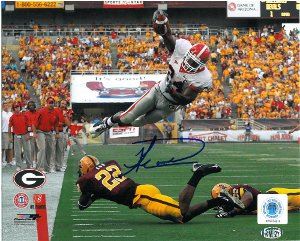 Knowshon Moreno finished the 2008 season with 1,792 yards of total offense and scored 18 touchdowns. He was named the team's offensive MVP. He finished second in Doak Walker award voting, behind Shonn Greene. He was named first-team All-SEC for the second consecutive year, and was a second-team All-American selection. Knowshon Moreno has hand autographed this Georgia Bulldogs 8x10 Photo. Moreno Hologram and Certificate of Authenticity from Athlon Sports.