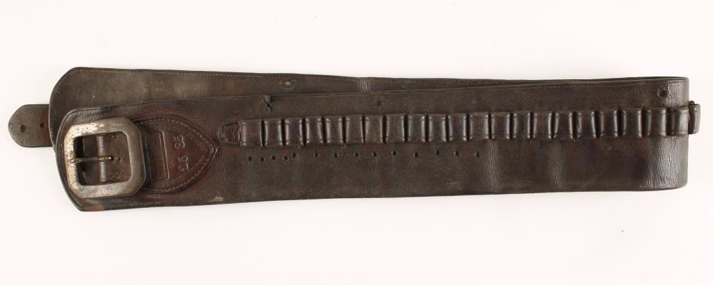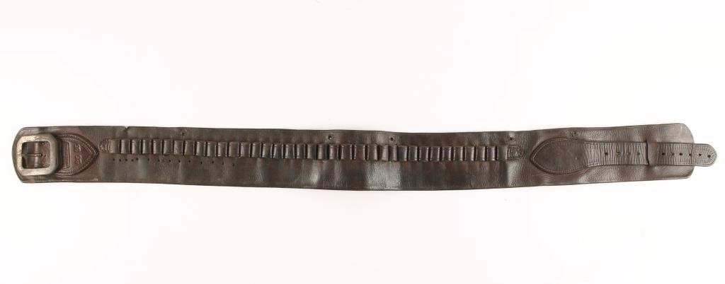 Made in Rawlins, WY circa 1910 -1920. Marked "Knox & Tanner/ Rawlins, Wyoming". Reuben Knox was a saddle maker who opened his saddlery in 1879, taking his son-in law, George Tanner, as a partner in 1900. The firm lasted until 1917. The belt shows modest, honest wear.