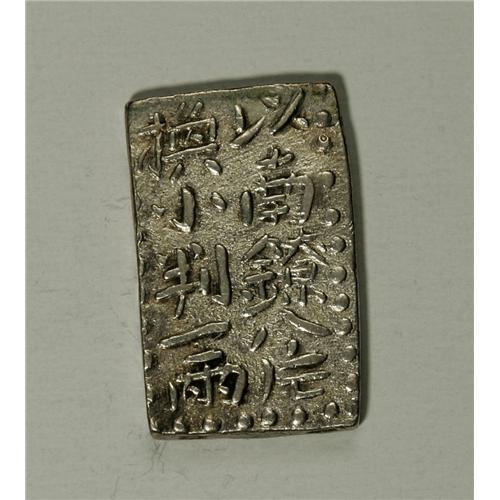<B>Ko-Nanryo 2 Shu-Gin ND (1772-1824),</B></I> JNDA-9.47, KM-C13, 9.85 gm, about XF. Edge stamps and two obverse stamps.<BR><BR><b>Shipping:</b> Coin/Currency (<a target="_blank" href="http://www.heritageauctions.com/common/shipping.php">view shipping information</a>)