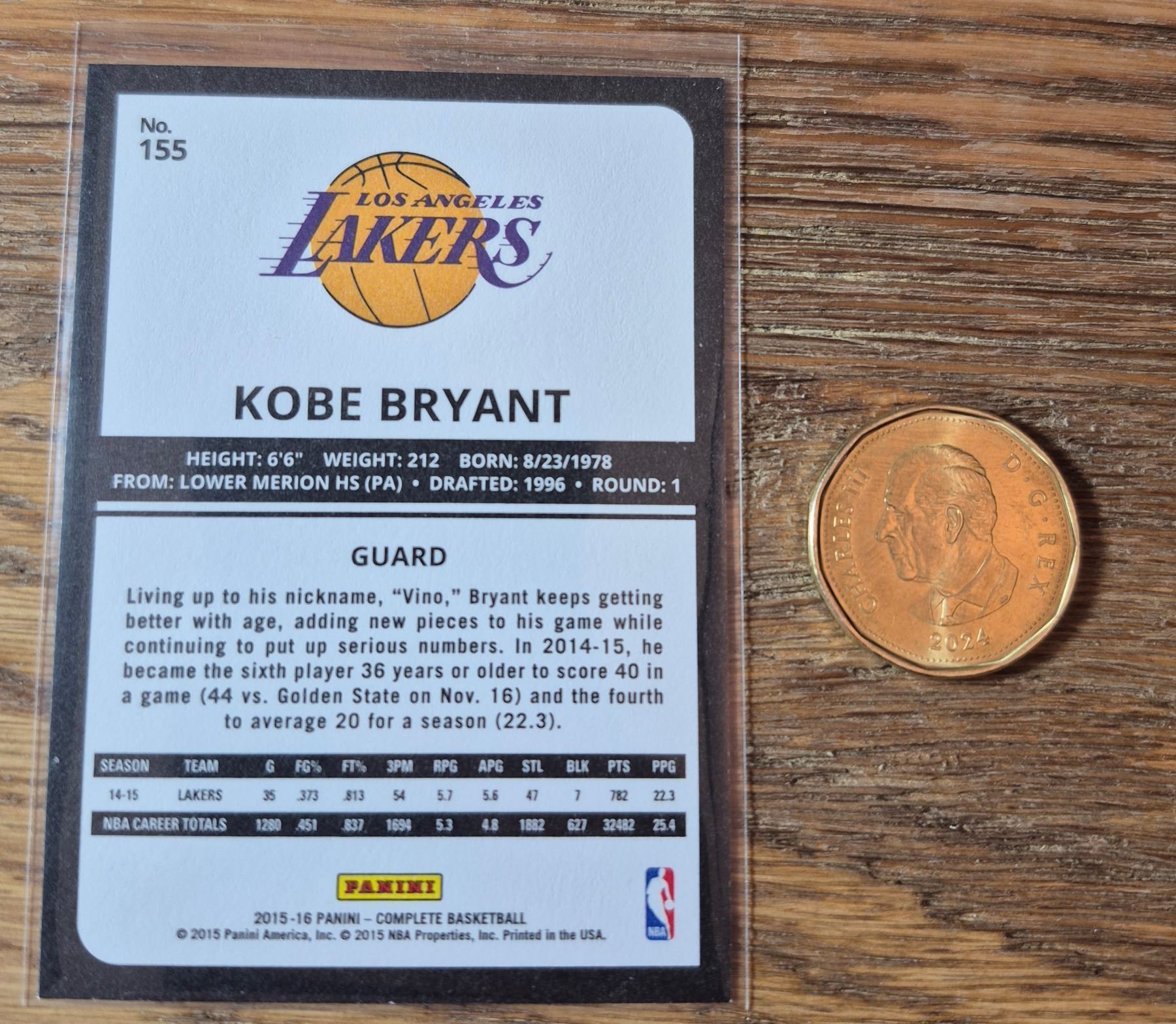 Classic Kobe Bryant card from Panini’s Complete Basketball series. Great early modern-era collectible of the Lakers legend.