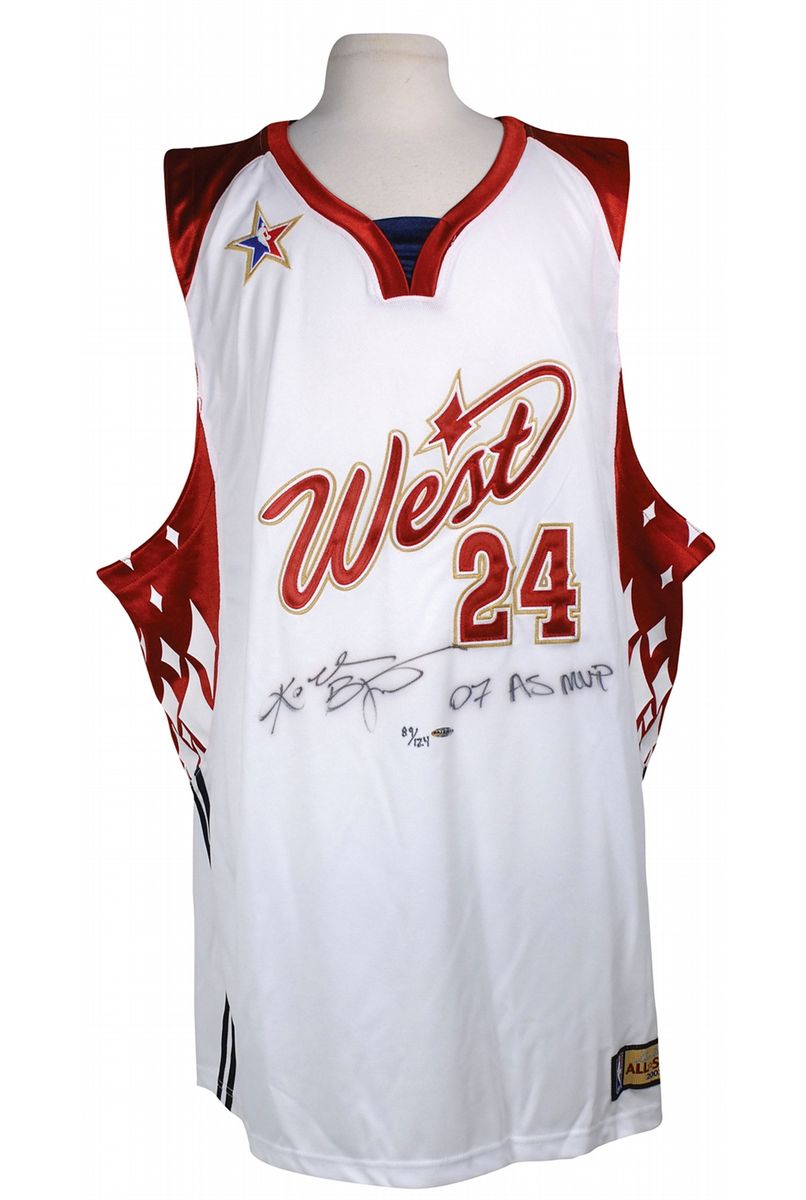 Official limited edition Adidas replica Western All Star basketball jersey, numbered 89/124, with sewn on letters and numbers, signed in black felt tip on the front, “Kobe Bryant 07 AS MVP.” In fine condition. Accompanied by a certificate of authenticity from Upper Deck and the original box.