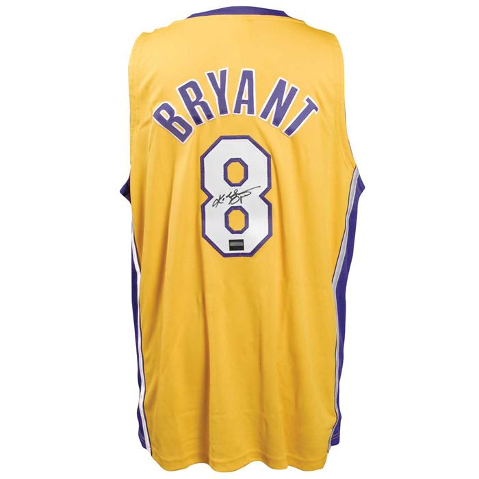 Official Nike replica Los Angeles Lakers basketball jersey, with sewn on letters and numbers, signed in black felt tip on the number on the back. In very fine condition. Pre-certified Steve Grad/PSA/DNA and RRAuction COA.