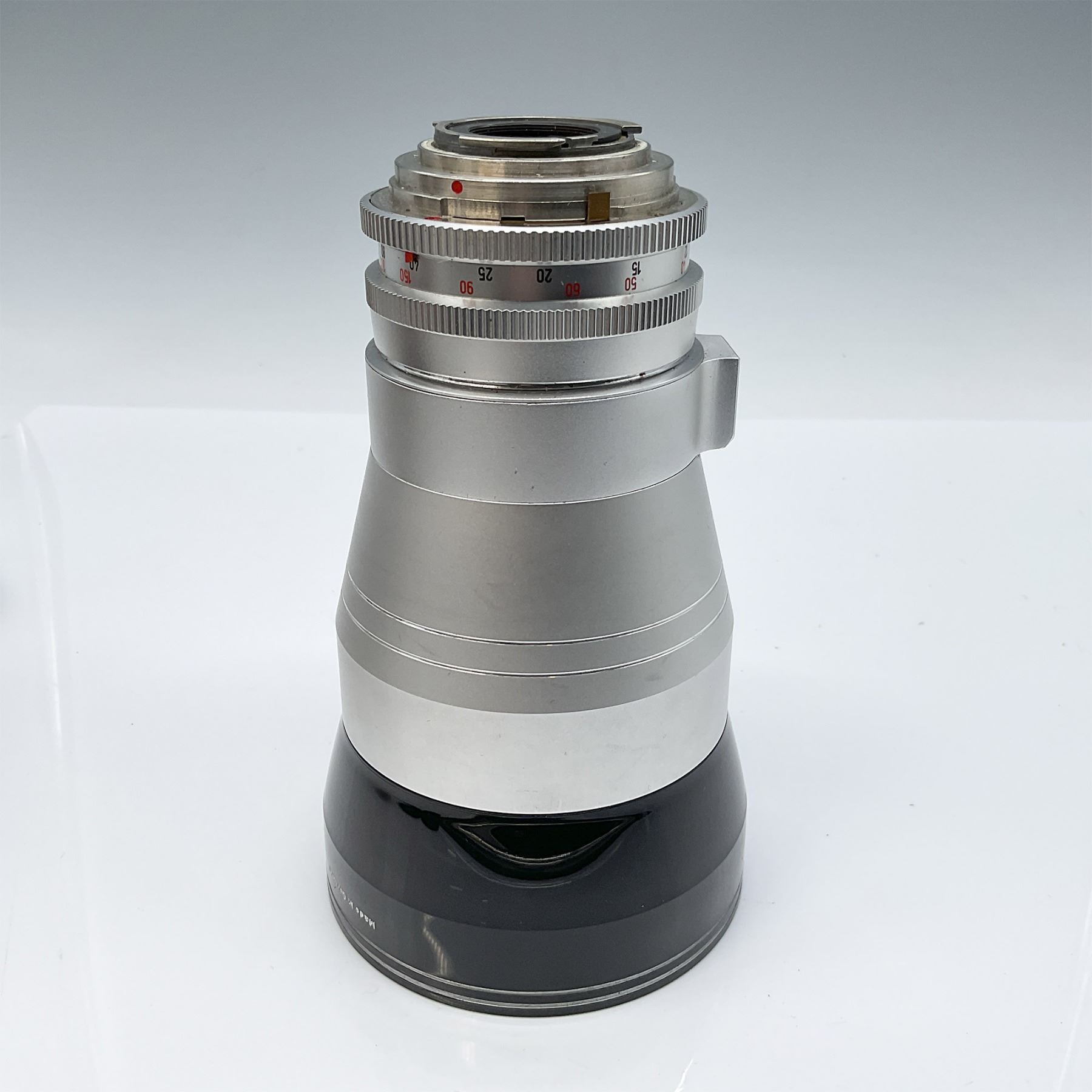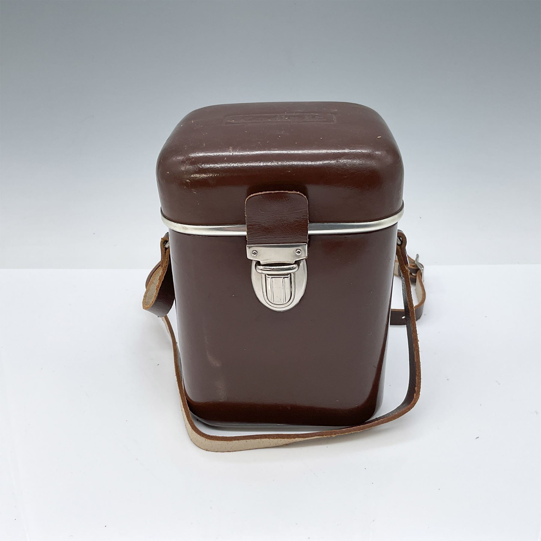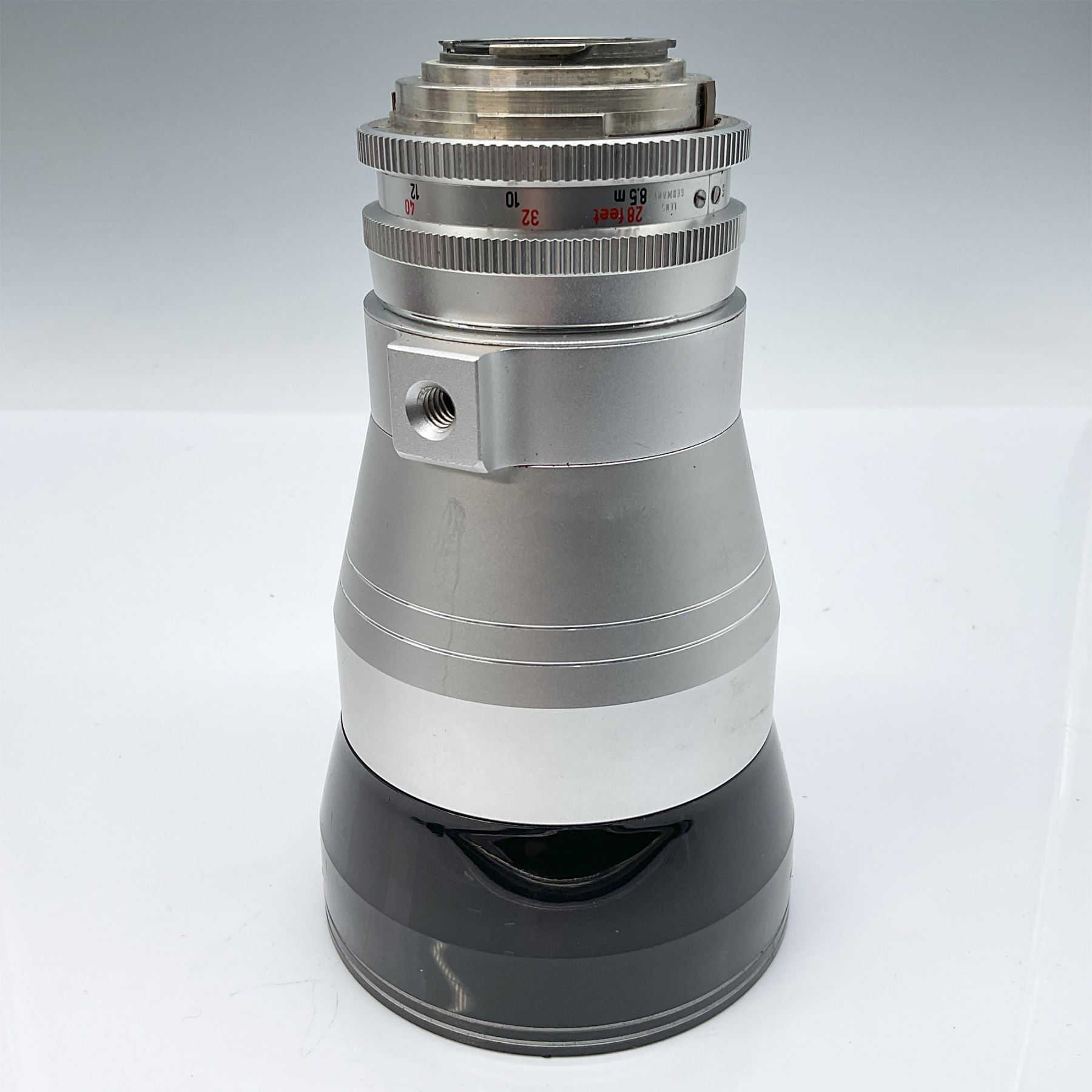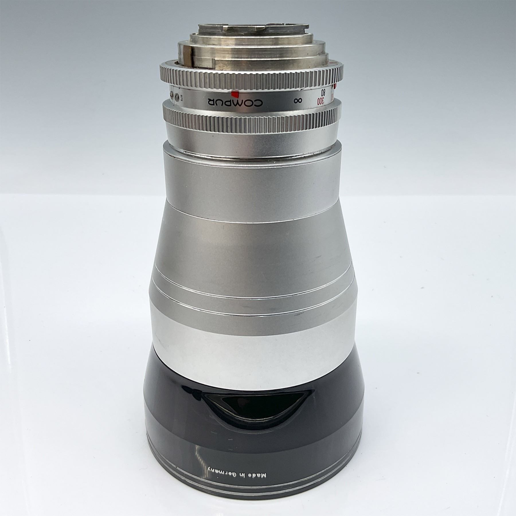 This vintage set includes a Kodak 200mm camera lens, a Schneider-Kreuznach Retina-Tele-Xenar f/4.8 lens, made in Germany, with serial number 987496. The set also features the original Kodak-branded metal lens hood, a protective lens cap, and a vintage brown leather carrying case with a red velvet interior and adjustable strap. The case measures 5.5 inches in height and includes fitted compartments and elastic bands to securely store the lens and its accessories. This set is ideal for photography enthusiasts or collectors seeking vintage camera equipment with both functional and aesthetic appeal. This lens is designed for capturing distant subjects with precision, making it perfect for nature, wildlife, or portrait photography. Compatible with vintage camera systems, it offers a classic photography experience, appealing to those who appreciate the craftsmanship of mid-20th-century optics. The lens exterior shows minimal wear consistent with its age and use. The optics appear clear with no visible cracks, although some dust particles are present and may require cleaning for optimal performance. The leather case is in good vintage condition, with functional clasps and minor signs of wear. This unique lot offers a nostalgic glimpse into vintage photography and would make a fine addition to any camera or optics collection.