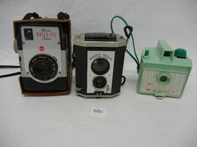 Kodak Brownie Bull's Eye Camera w/ Case, Savoy Camera, and Kodak Brownie Reflex Synchro Model Camera