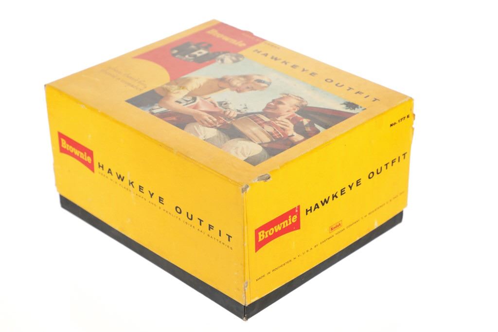 Featured in this lot is this Kodak Brownie Hawkeye Flash Model camera circa 1950's. The camera features a two piece construction with the flasher screwing on the side of the camera. The Brownie Hawkeye Flash Model Camera is recognized as one of the most popular Brownie cameras made. It is easy to use and is still extremely popular with film photographers because it's cheap to buy, it comes apart easily for lens and viewfinder cleaning, and most will accept 120 film without respooling it onto 620 spools making it even easier to shoot with. This beautiful camera was designed by Arthur H. Crapsey, the designer of many other popular Kodak cameras. The condition of this camera flash model is good with no obvious signs of damage and shows good overall condition. The measurements of this camera is 5 1/2" x 7" x 5 1/2".