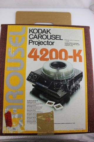 Kodak Carousel Projector 4200-K includes slide tray and projection lamp. Comes in original box and is in working condition.