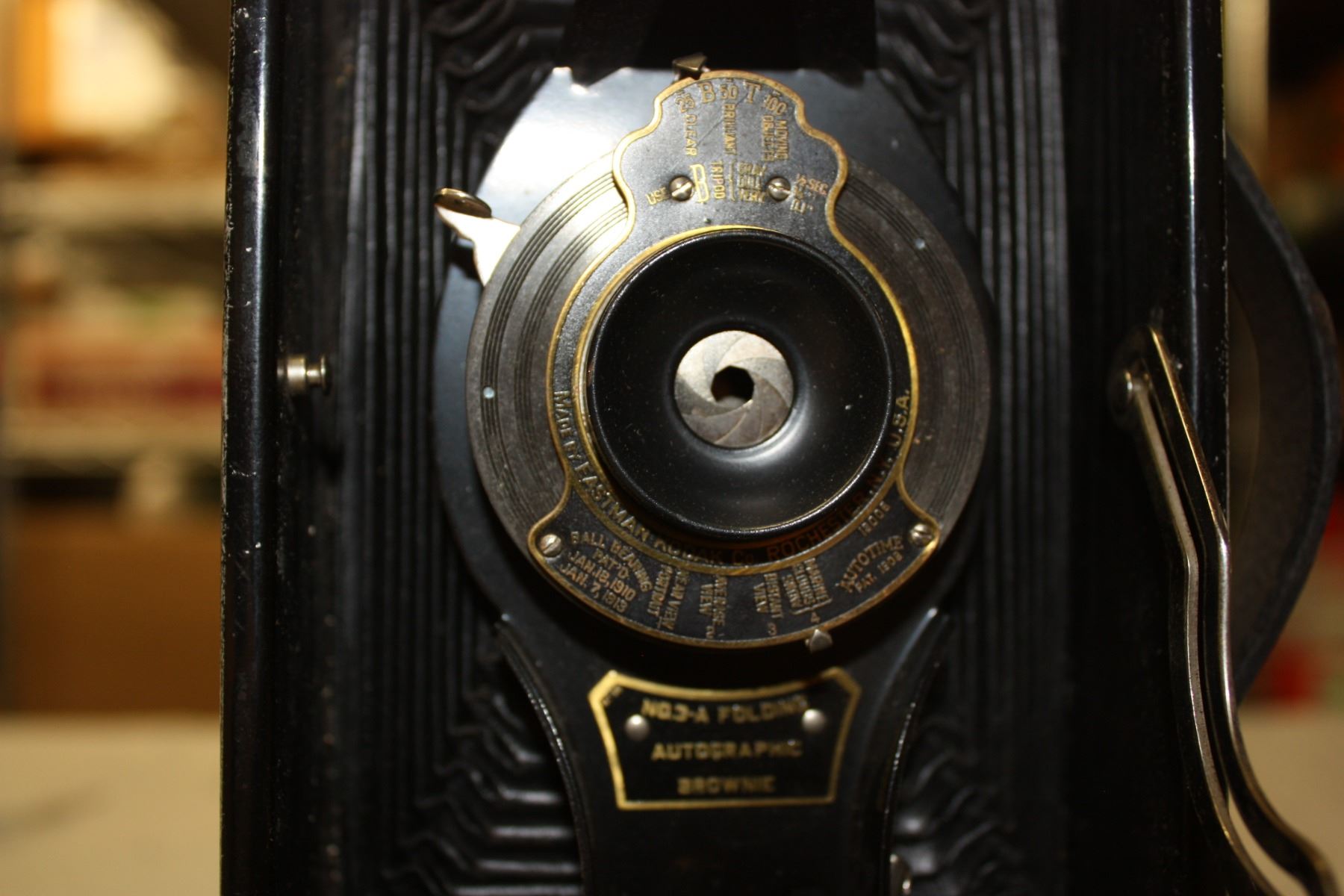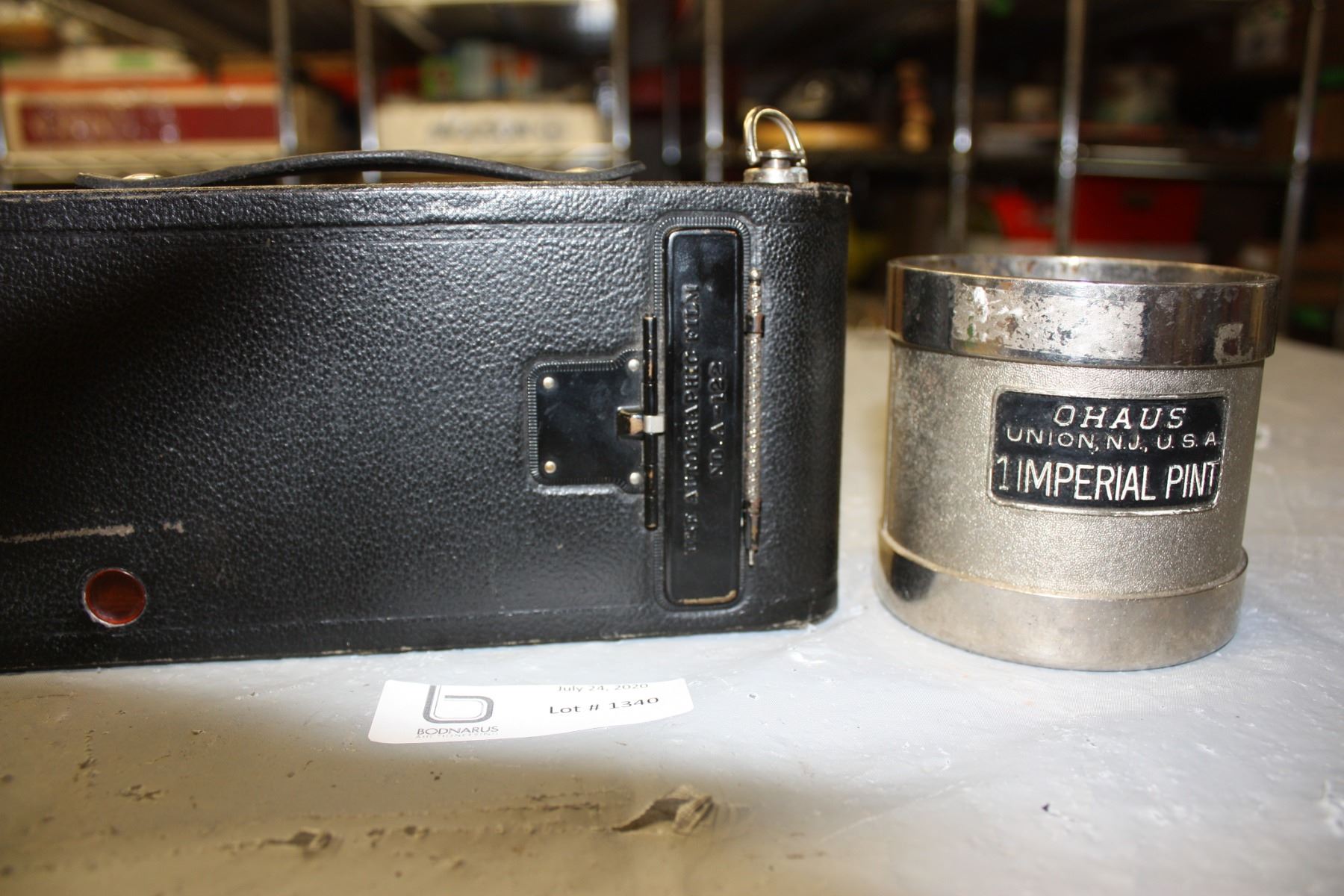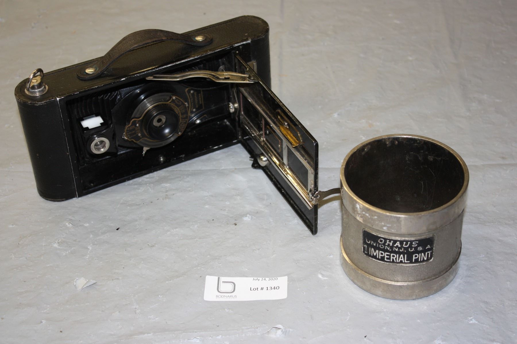 Kodak Co. LTD No 3-A Folding Autographic Brownie Camera and Ohaus 1 Imperial Pint Metal Cup