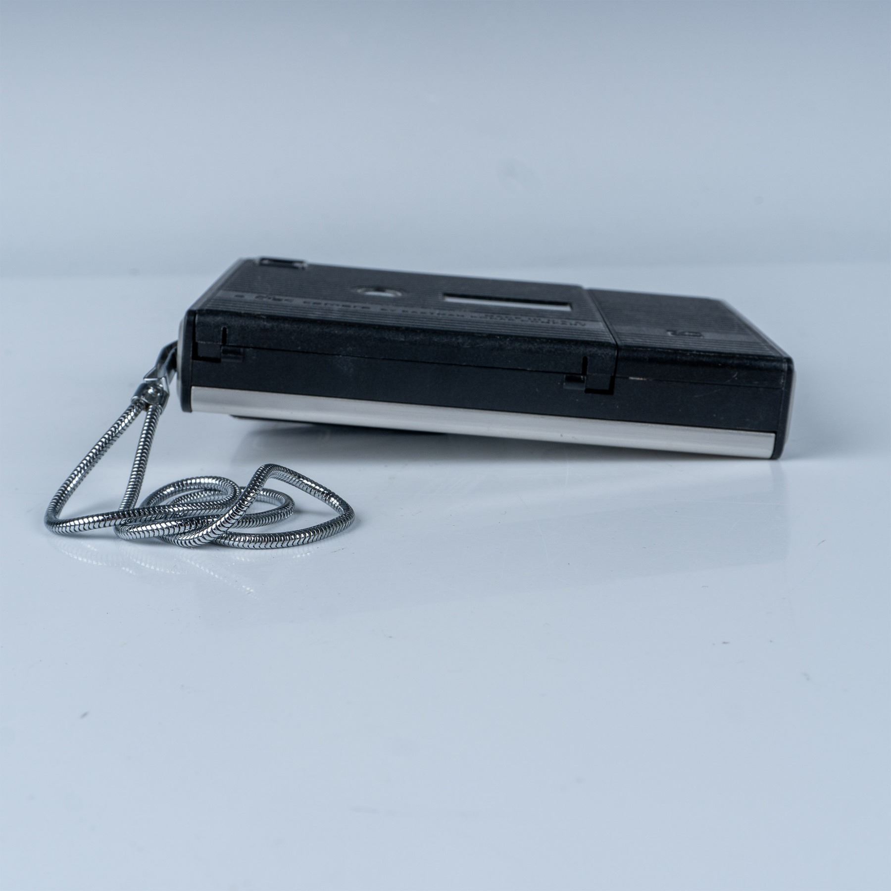 Vintage Kodak Disc 4000 camera, manufactured by Eastman Kodak Company, featuring a sleek silver and black design with built-in flash and wrist strap for portability. This retro camera is an excellent collector's piece, showcasing Kodak's innovative disc film technology from the 1980s. The back of the camera is marked with the Kodak logo and "Made in U.S.A." Compact and lightweight, this camera is a unique relic of analog photography.