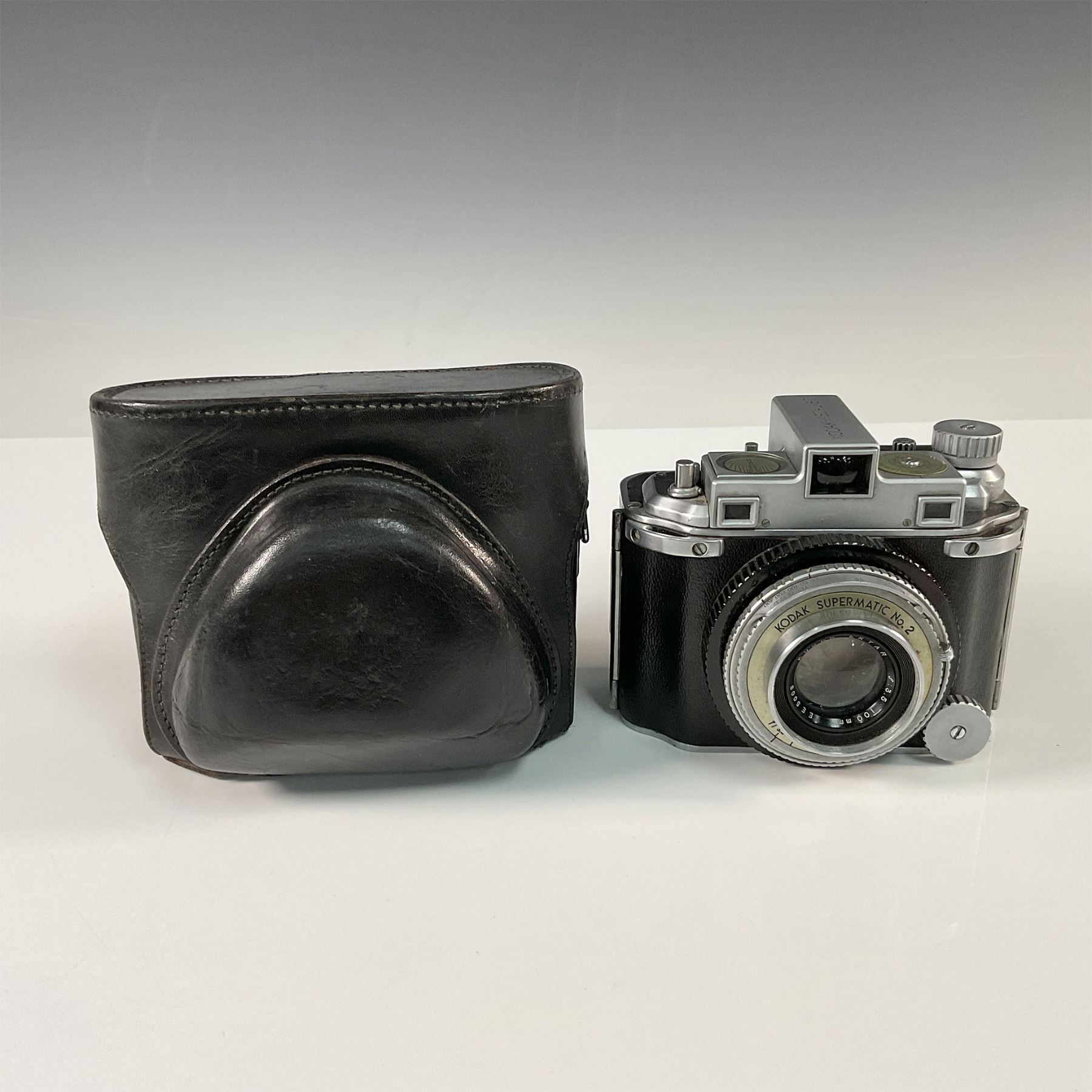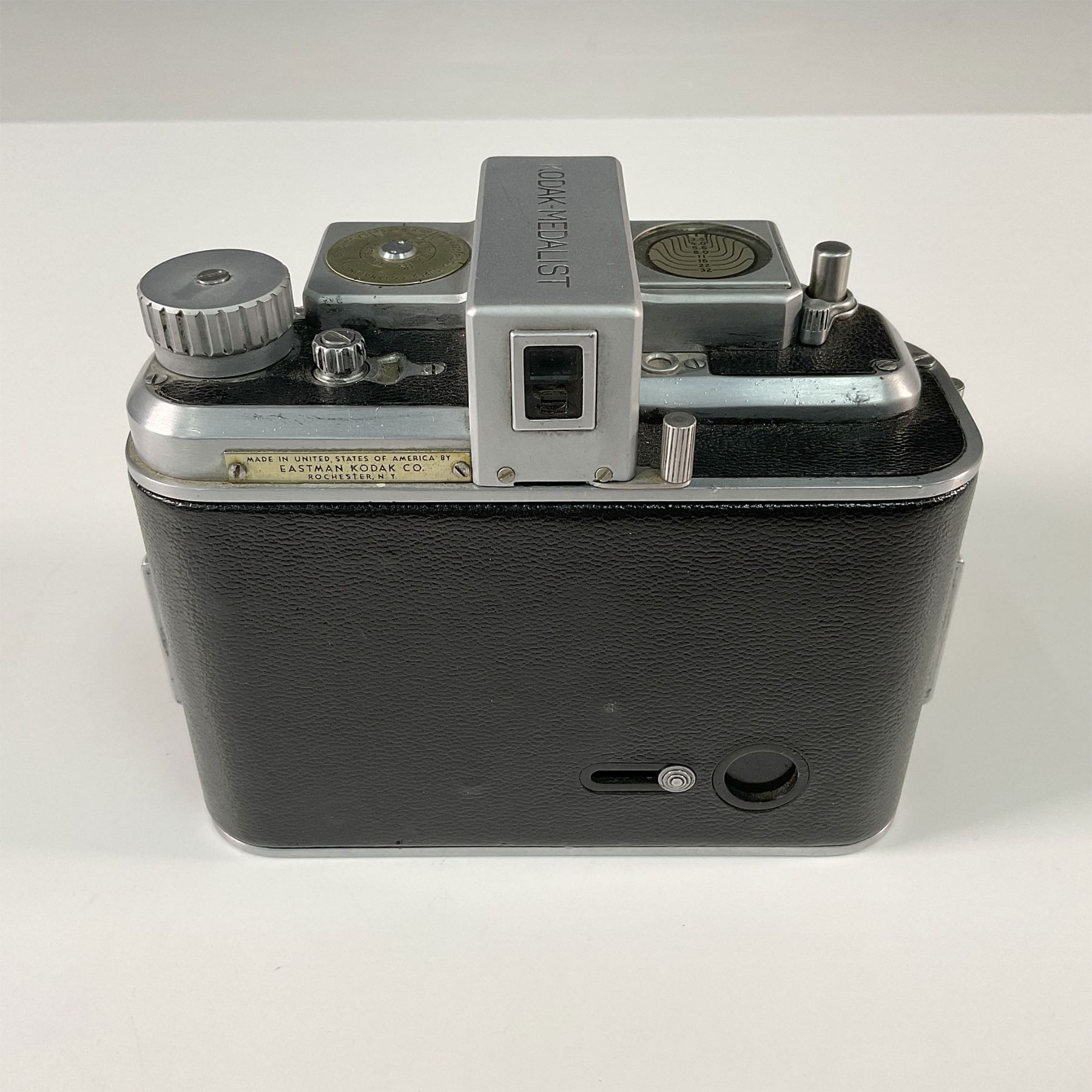 The Kodak Medalist No 1 is a premium medium format camera, renowned for its precision engineering and robust design. Manufactured in the United States during the mid-20th century, the Medalist was intended for professional photographers and advanced enthusiasts. It features a stunning Kodak Ektar 100mm f/3.5 lens and the innovative Kodak Supermatic No. 2 shutter, offering exceptional image quality and versatility. The Kodak Ektar lens 100mm f/3.5, a highly regarded lens known for its sharpness and color rendition. Kodak Supermatic No. 2 shutter with speeds ranging from 1 second to 1/400 second. Includes original leather protective case.
