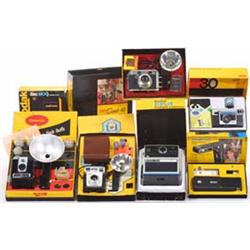 1) "Signet 40", mit Flashholder und Daylight Filter. - 2) "Brownie Hawkeye Flash Outfit". - 3) "Instamatic X-30 Color Outfit". - 4) "Brownie Starmatic Outfit". - 5) "Kodak Tele-Ektralite 600". - Und: 6) "Disk 4100 Camera". - Sowie: 7) "Kodak EK 4 Instant Camera". - Alles in Originalverpackungen. Guter bis sehr guter Zustand. All items originally boxed. - (2/2) - € 100/150 - (99/3)