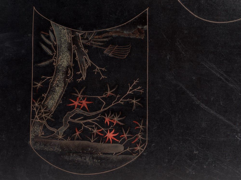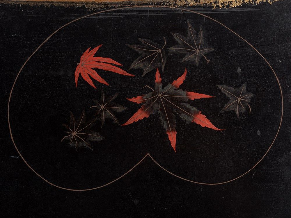 Black lacquer ground with polychrome painting, mainly in gold and red