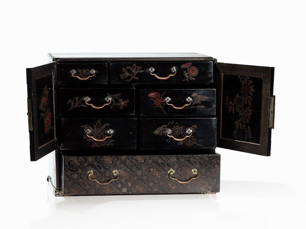 Kodansu Lacquer Cabinet with Ornamental Painting, Japan, Meiji