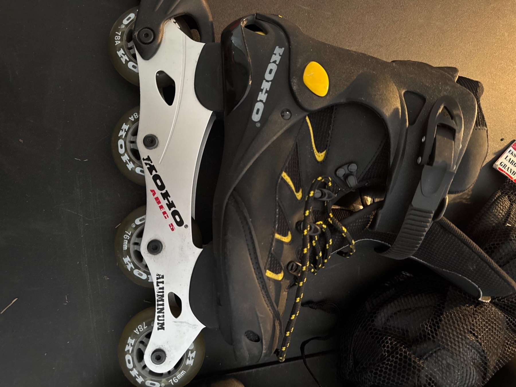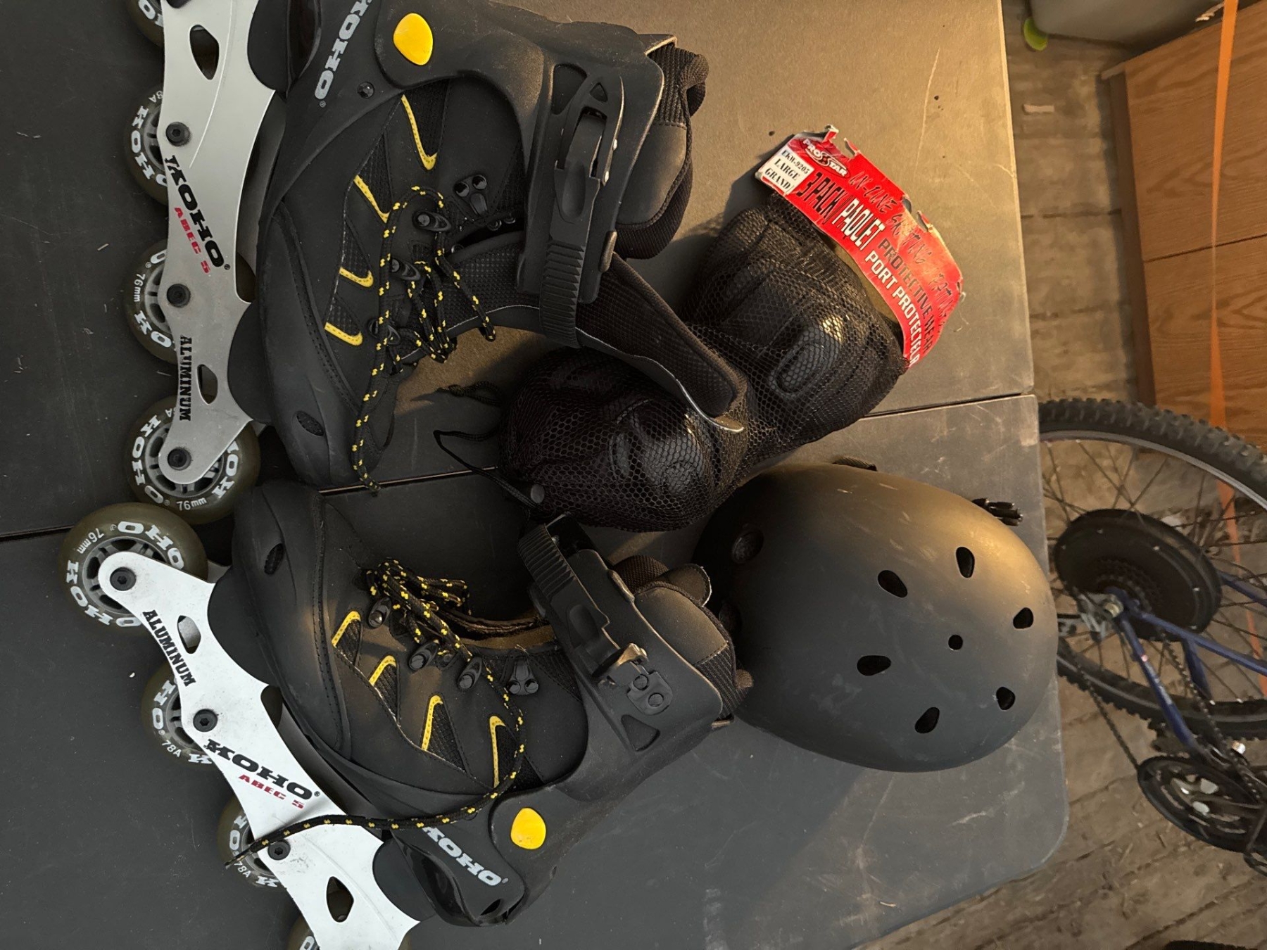 Koho rollerblades. Rollerblading helmet. Size large, extra large. Three pack of protective wear. Siz