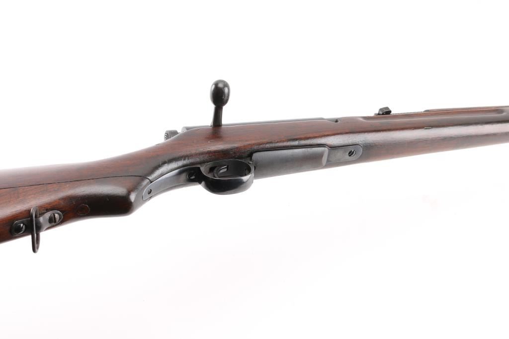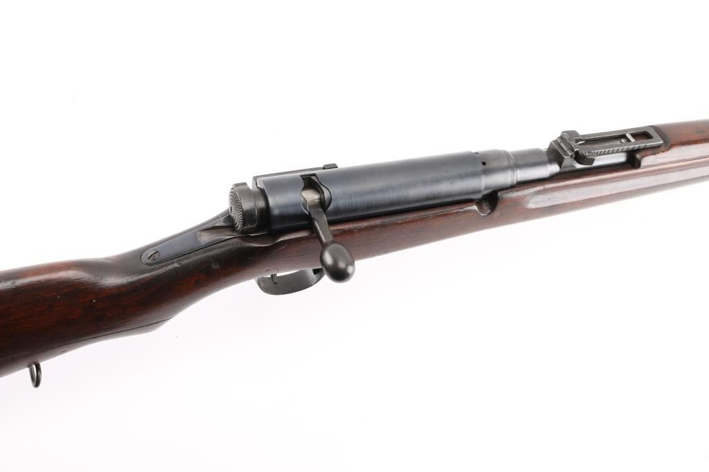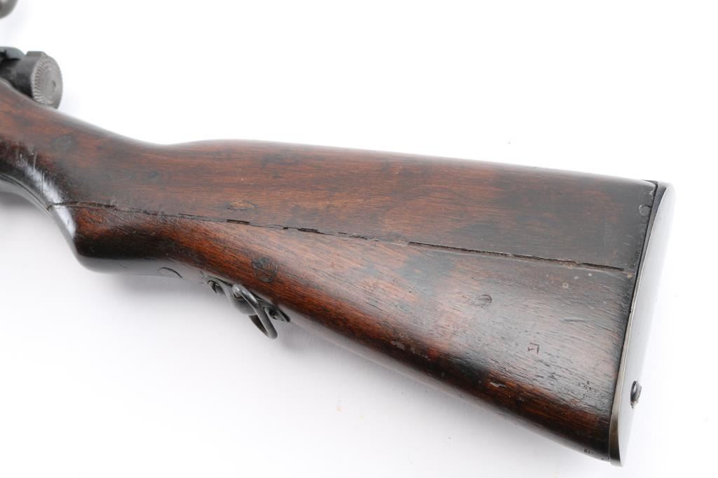 GOOD: Some minor replacement parts; metal smoothly rusted or lightly pitted in places, cleaned or re-blued; principal letters, numerals and design on metal legible; wood refinished, scratched bruised or minor cracks repaired; in good working order.
