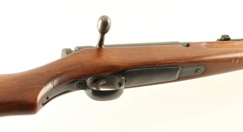 SN: 177248 Ground Mum. Japanese military bolt action rifle features 19" barrel, blade front sight with protector ears, V notch rear sight with flip-up elevator ladder, cleaning rod, bayonet lug, side mounted sling swivels, manual safety, hinged floorplate, dust cover. Bore is fair to good condition, frosted, darkness in grooves, strong rifling. Retains 85% blued finish, with bare metal at grind mark where Chrysanthemum was removed, thinning of edges. Original straw color visible at trigger, rear sight spring, bolt stop spring. Stock is good serviceable condition, appears lightly sanded & refinished, with some dents remaining as smooth dark spots, many small dents and creases. Rear action screw tip extends past tang slightly. Butt dovetail is tight. Dust cover numbered "682". Bolt numbered "248" on stem & safety. Markings are generally sharp edged and deep. Condition is NRA Very Good (refinished stock) *** C&R Firearm ***