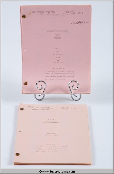 Universal Studios Scripts ~ "Kojak-Take Out Death" / #47712 / Revised Final Draft / May 26, 1977 ~ "The Six Million Dollar Man-Sharks!" / #47307 / Revised Final Draft / July 12, 1977