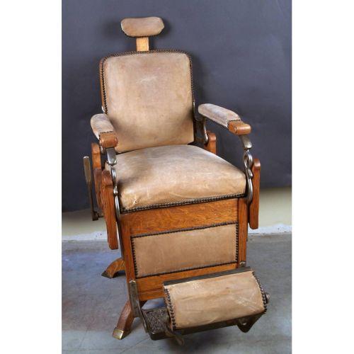 Koken Oak 4 Legged Barber Chair carved Oak Older Restoration