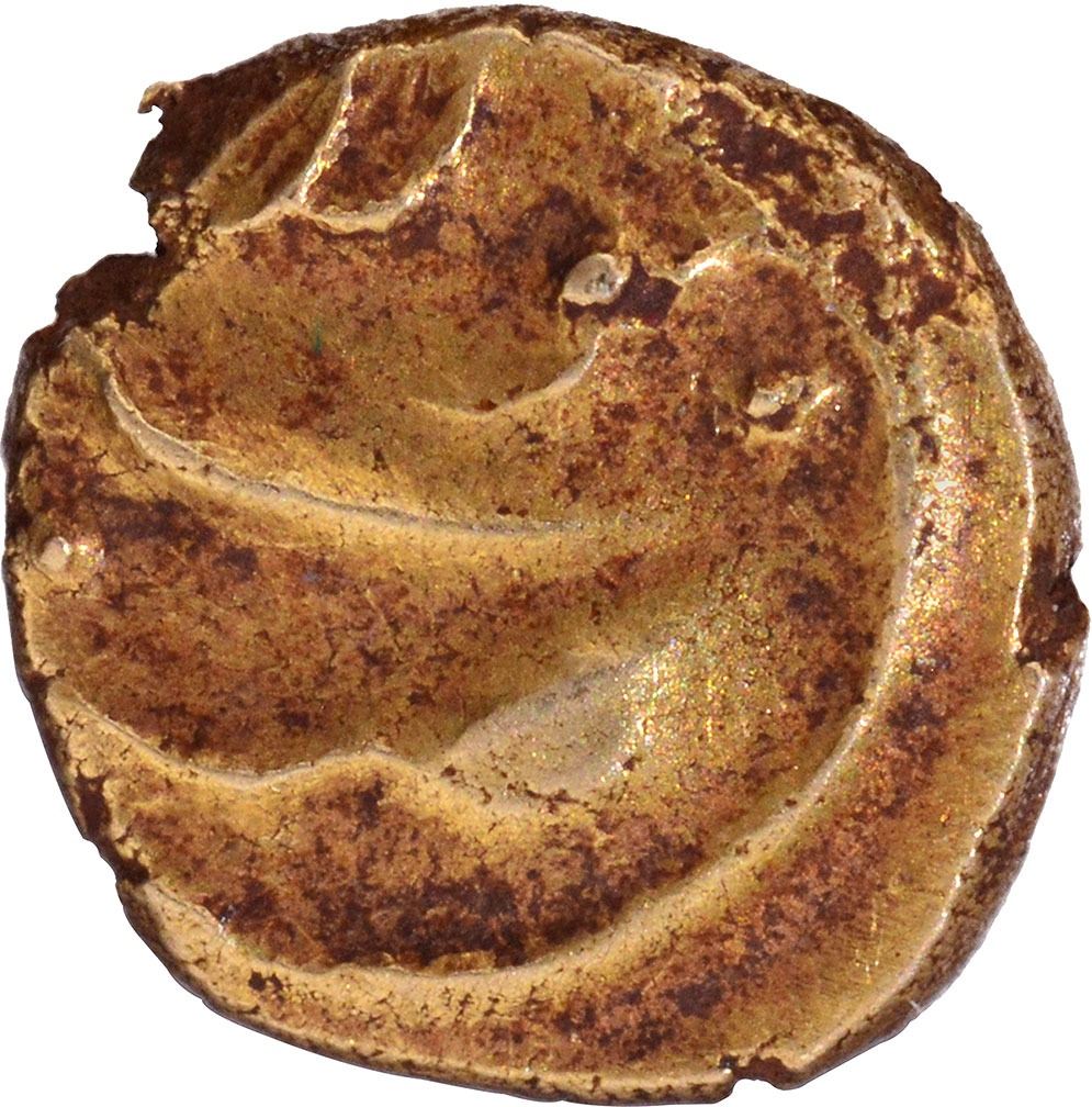 Alamgir II (AH 1167-1173/1754-1759 AD),KolarMint, Gold Fanam,Obv: Persian legend Alamgir, Rev: Persian legend Kolar, 0.4g, 6.34mm, (Herrli# 8.07.18), about extremely fine.