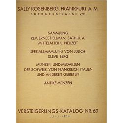 Rosenberg, Sally. VERSTEIGERUNGS-KATALOG NO. 69. I. SAMMLUNG REV. ERNEST ELLMAN, BATH U. A. MITTELALTER UND NEUZEIT. II. SPEZIALSAMMLUNG VON JÜ...
