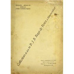 Schulman, J. CATALOGUE DE LA COLLECTION RENOMMÉE ET IMPORTANTE DE MONNAIES ET MÉDAILLES DE FEU M. P. J. B. RUYS DE PEREZ À BLOEMENDAA...