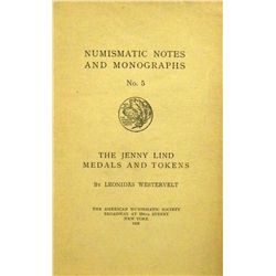 Westervelt, Leonidas. THE JENNY LIND MEDALS AND TOKENS. New York: ANS, 1921. 16mo, original printed card covers. Frontispiece; (2), 25, (1) pages; 9 p