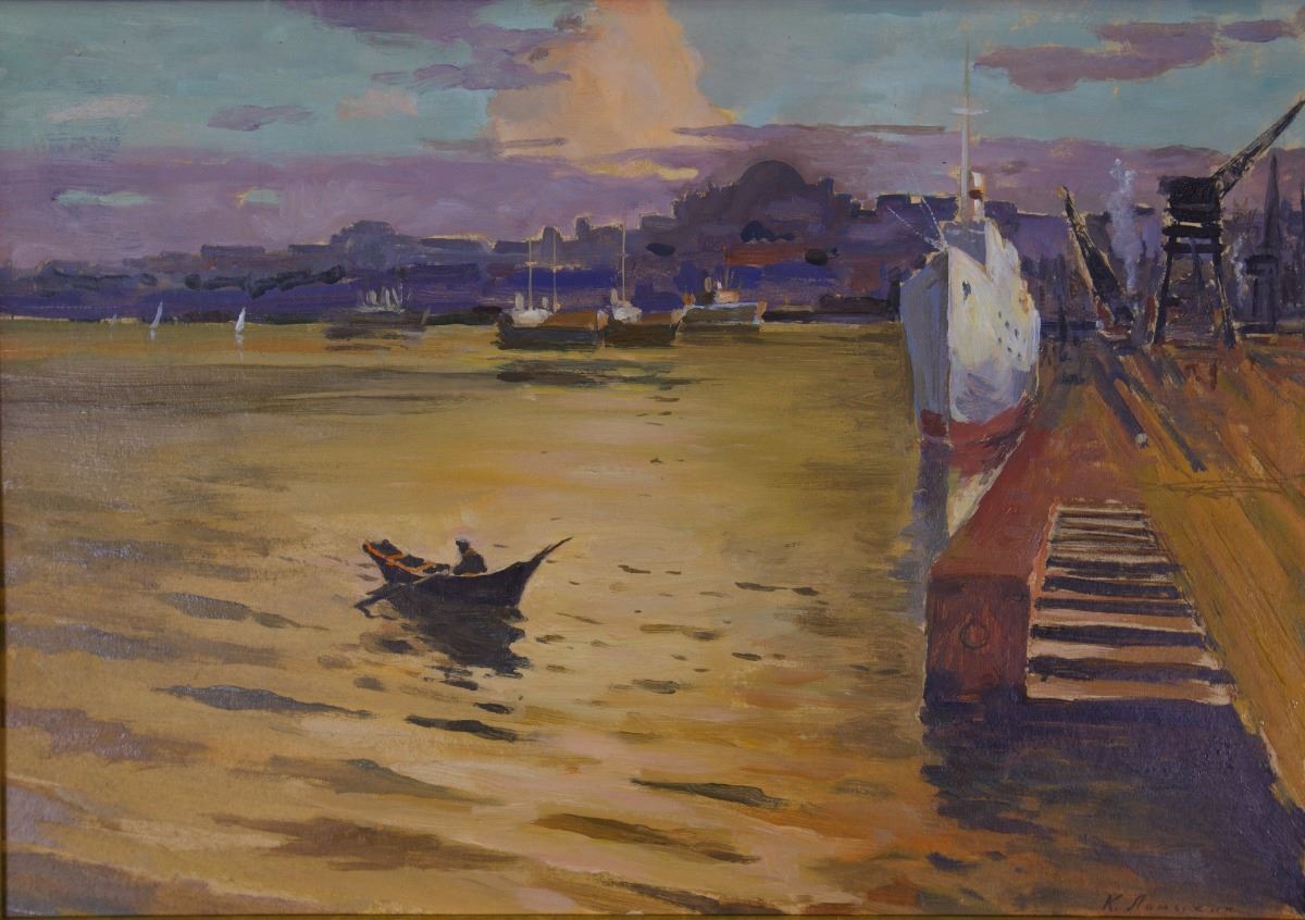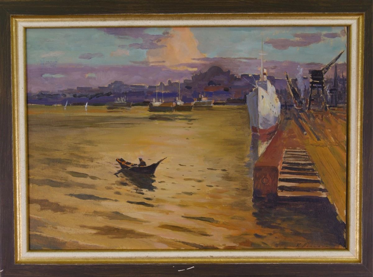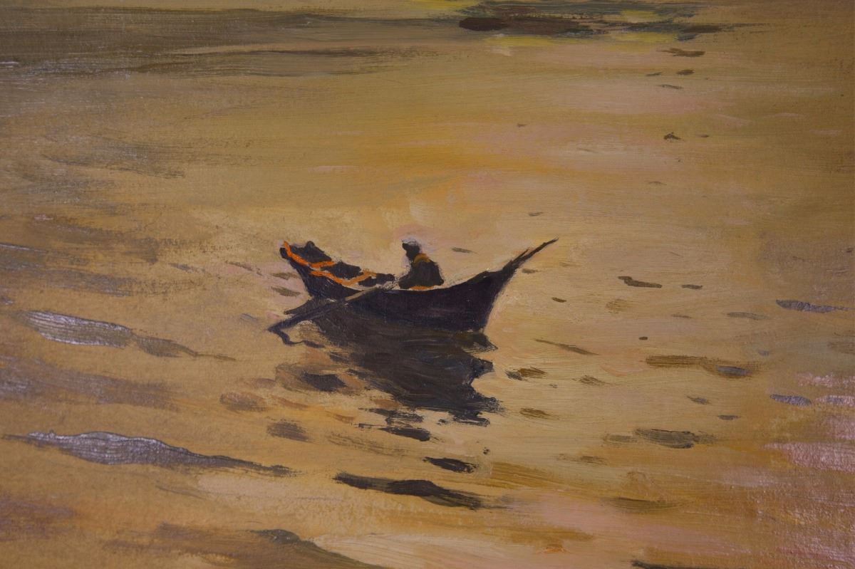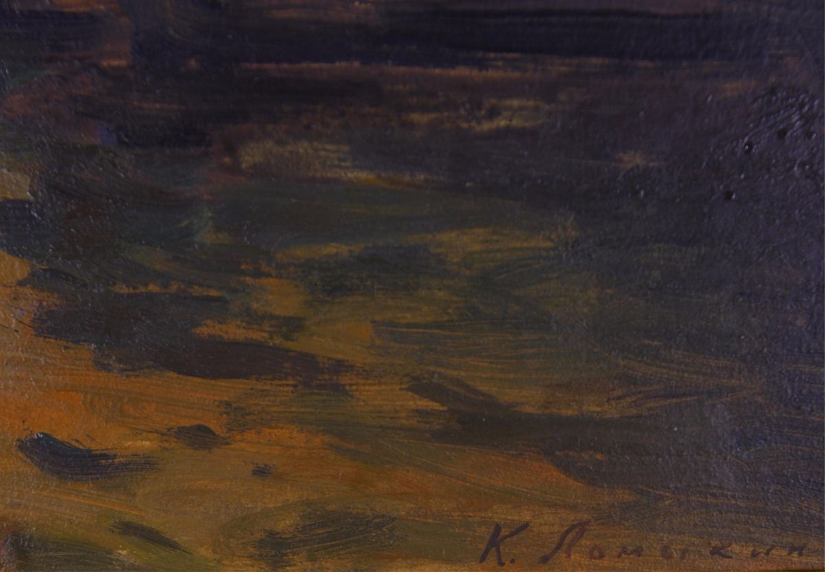 Sunset landscape; American oil on board; framed; signed by artist K. Matveevic; 40 cm x 55 cm, 63 cm x 50 cm with frame