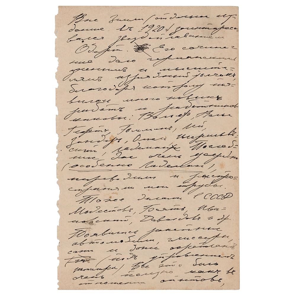 ALS in Russian, four pages, 4.75 x 7.5, 1927. An untranslated handwritten letter from Konstantin Tsiolkovsky. In fine condition, with somewhat rough edges. Accompanied by a Russian-language hardcover 1934 edition of 'K. E. Tsiolkovsky, Book I, All-Metal Airship.'