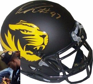 Kony Ealy played college football at Missouri. He is considered one of the top prospects for the 2014 NFL Draft. He was the 2014 Cotton Bowl Offensive Player of the Game and announced on January 3, 2014 that he would forgo his senior season and enter the 2014 NFL Draft. Kony Ealy has hand signed this Missouri Tigers Authentic Schutt Alternate Mini Helmet. Private Signing March 8th, 2014 in Chesterfield, MO. Photo of the Signing and Certificate of Authenticity from Athlon Sports.
