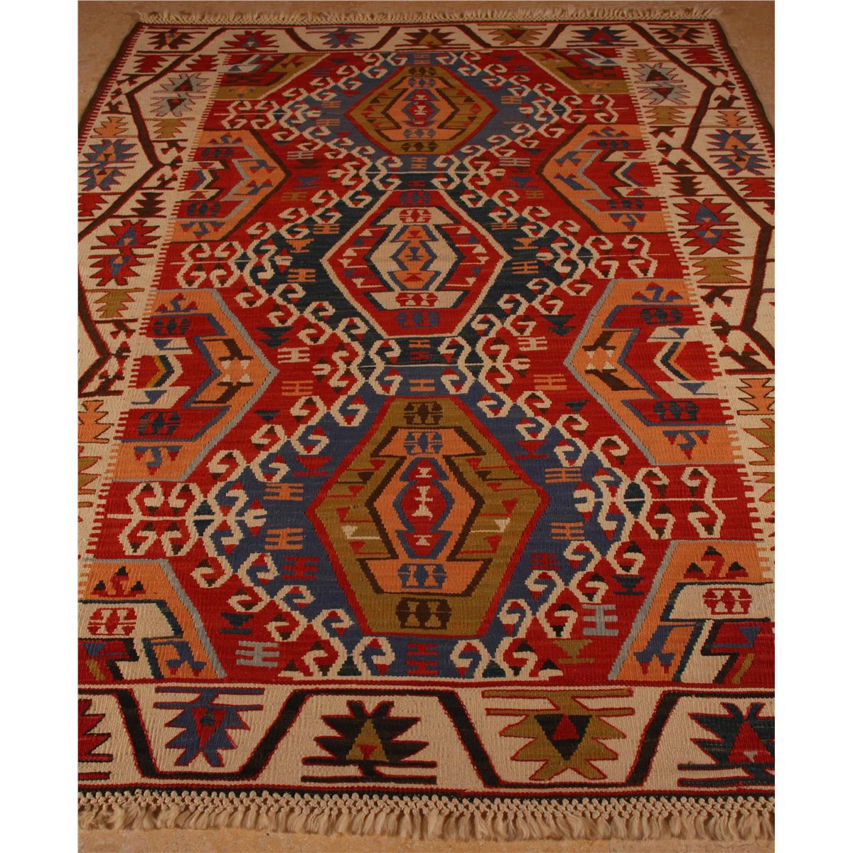 Konya, West Central Turkey, 100% handspun wool, mixed with 10% angora, vegetable dye, color fast [ Width (ft/in)=5'3" , Height/Length (ft/in)=7' , Depth (in)= 0, Weight (lbs)=9 ]