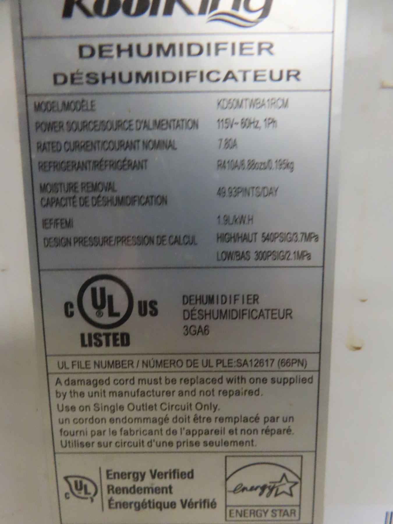 Koolking Dehumidifier - Comfort Filter, Turbo Mode