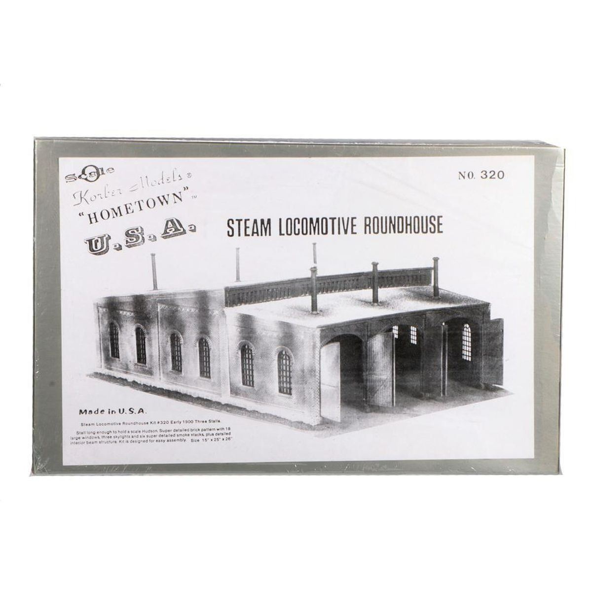 Korber Models: Hometown USA Series: O Scale Steam Locomotive Roundhouse Kit. No 320 Early 1900 Three Stalls. Scaled to accomodate a scale Hudson. Unassembled in original box - still shrink wrapped.