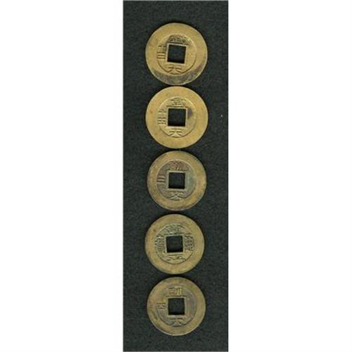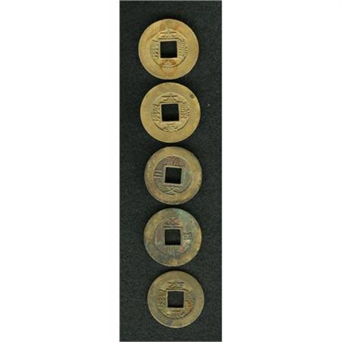 <B>A five-piece lot of 1 Mun seed coins including: </B></I> (2) Palace Guard Office, KM337s, Series 13 XF with corrosion & series 15 XF; and (3) Military Training Command, KM454s, series 4 XF slightly porous, series 4 XF with corrosion, and series 4 VF with corrosion.<BR><BR><b>Shipping:</b> Coins & Currency (<a target="_blank" href="http://www.heritageauctions.com/common/shipping.php">view shipping information</a>)