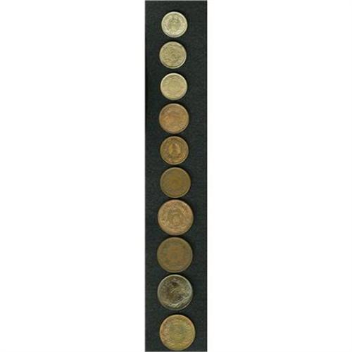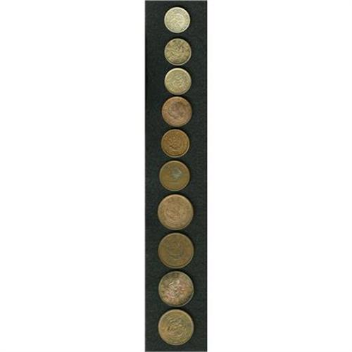 <B>A nice 10 piece collection as follows:</B></I> 5 Fun 1896, KM1107, UNC with iridescent surfaces; 5 Fun 1902, KM1116, UNC with traces of luster; 1/4 Yang 1898, KM1117, XF; 1/2 Chon 1906, KM1124, XF; 1 Chon 1905, KM1125, Choice AU; 1 Chon 1906, KM1125, VF; 1 Chon 1907, KM1132, XF; 1 Chon 1909, KM1137, UNC with luster; 5 Chon 1907, KM1126, VF; and a 20 Chon 1907, KM1134, cleaned XF. <BR><BR><b>Shipping:</b> Coins & Currency (<a target="_blank" href="http://www.heritageauctions.com/common/shipping.php">view shipping information</a>)