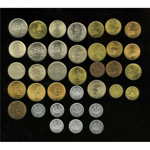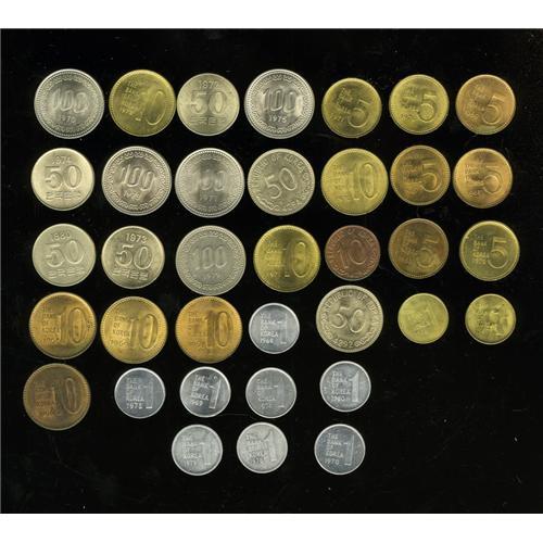 <B>Choice Collection of South Korea, </B></I>thirty-six coins, all choice brilliant UNC unless otherwise noted. Many of the dates in the 1960's and early 1970's are highly elusive in true fully lustrous UNC and are underrated in the standard catalogs. This is the first collection of this type that we have seen in the market. KM1 10 Hwan 4294, KM2 50 Hwan 4292 and 4294, KM4 Won 1966 and 1967, KM4a Won aluminum, 1968, 1969, 1970, 1974, 1975 and 1978 AU, 1979 AU and 1980, KM5 5 Won bronze, 1966 lightly toned, 1967 choice and 1968 gem, 1969, KM5a 5 Won brass, 1970, 1971 and 1972, KM6 10 Won bronze 1966 highly lustrous, 1967 choice, 1968 choice and 1969 choice, KM6a 10 Won brass, 1970, choice, possibly the previous type (rare), 1971, 1972, KM20 50 Won 1972 choice, 1973, 1974 and 1980 AU, KM9 100 Won 1970, 1971, 1973 and 1975, all four choice to gem, and 1979 XF. Careful inspection is recommended as several of the key dates are particularly pristine. Current catalog value is $634. <B>Sold as is, no return lot.</B></I><BR><BR><b>Shipping:</b> Coins & Currency (<a target="_blank" href="http://www.heritageauctions.com/common/shipping.php">view shipping information</a>)