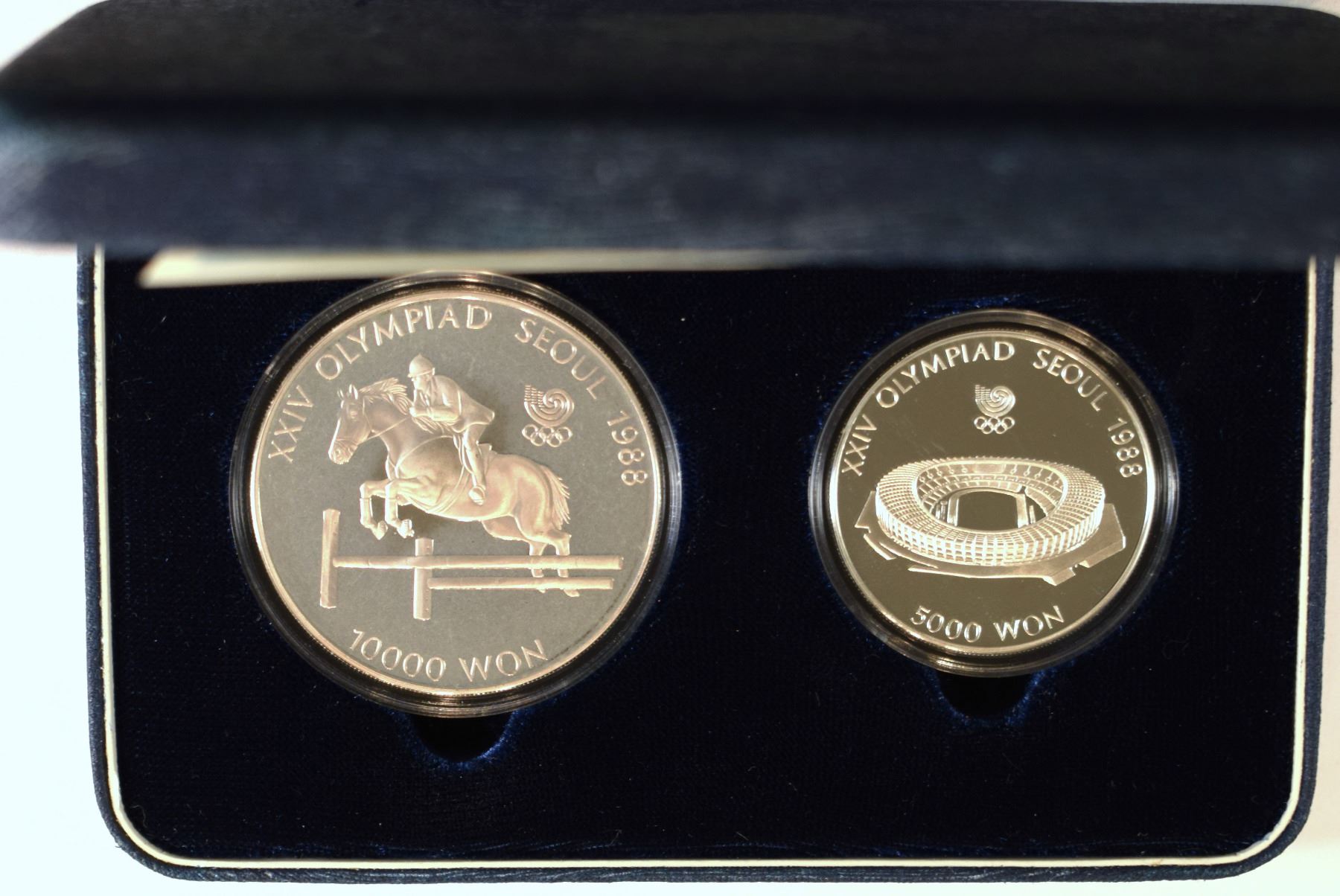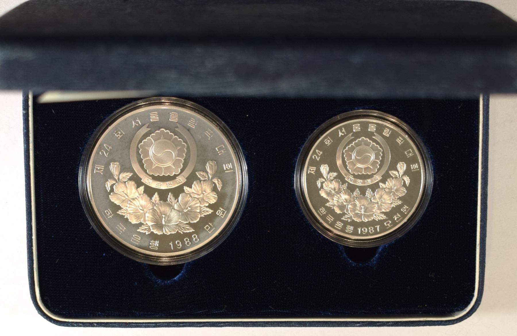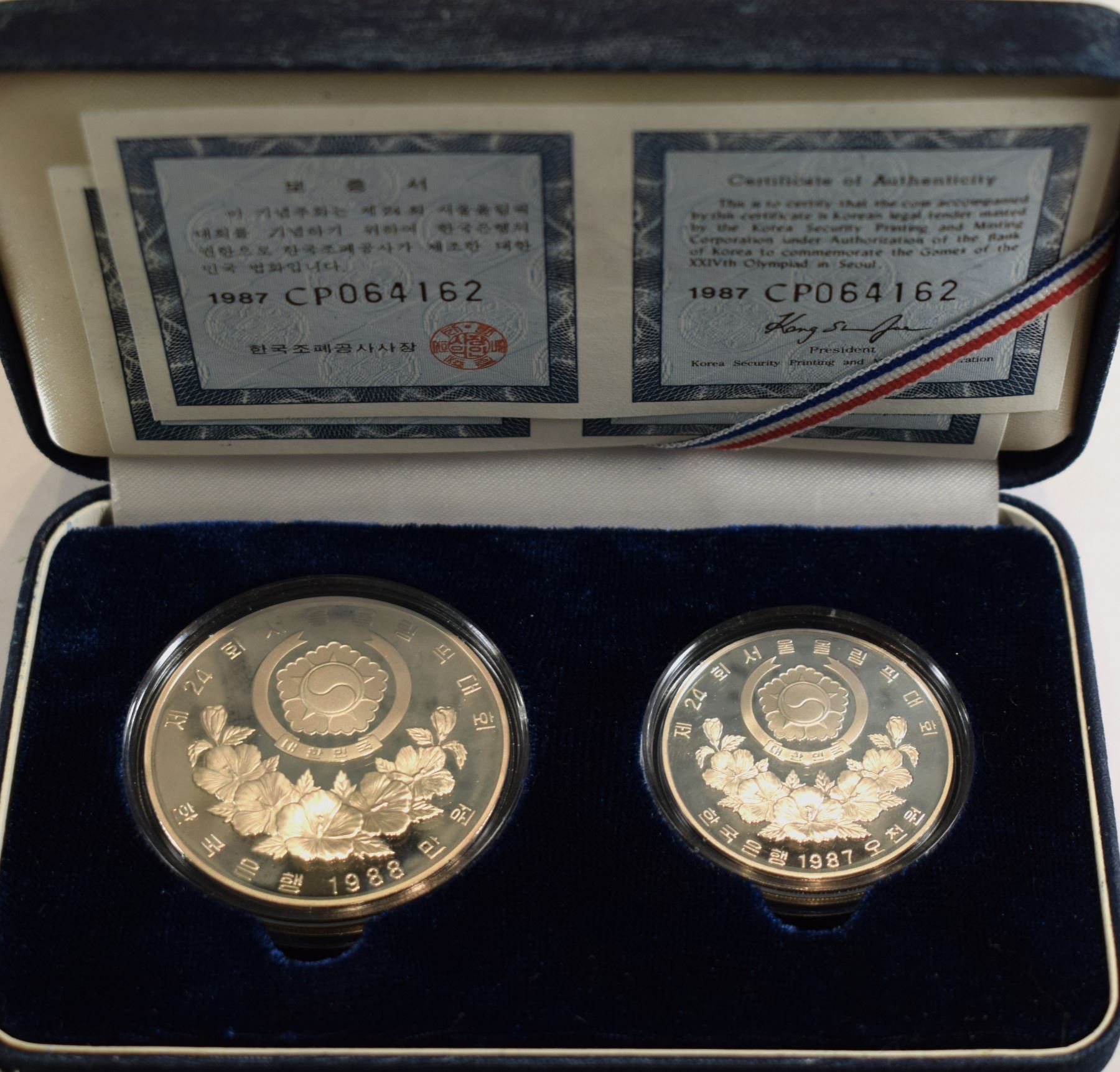 Korea South, Olympic's Proof Set of 2 Coins 1988 Sterling ,925 incapsulated Original Packing w/ C.O.A. (ASW 1,5 Oz) (2) KM #60 and KM #75